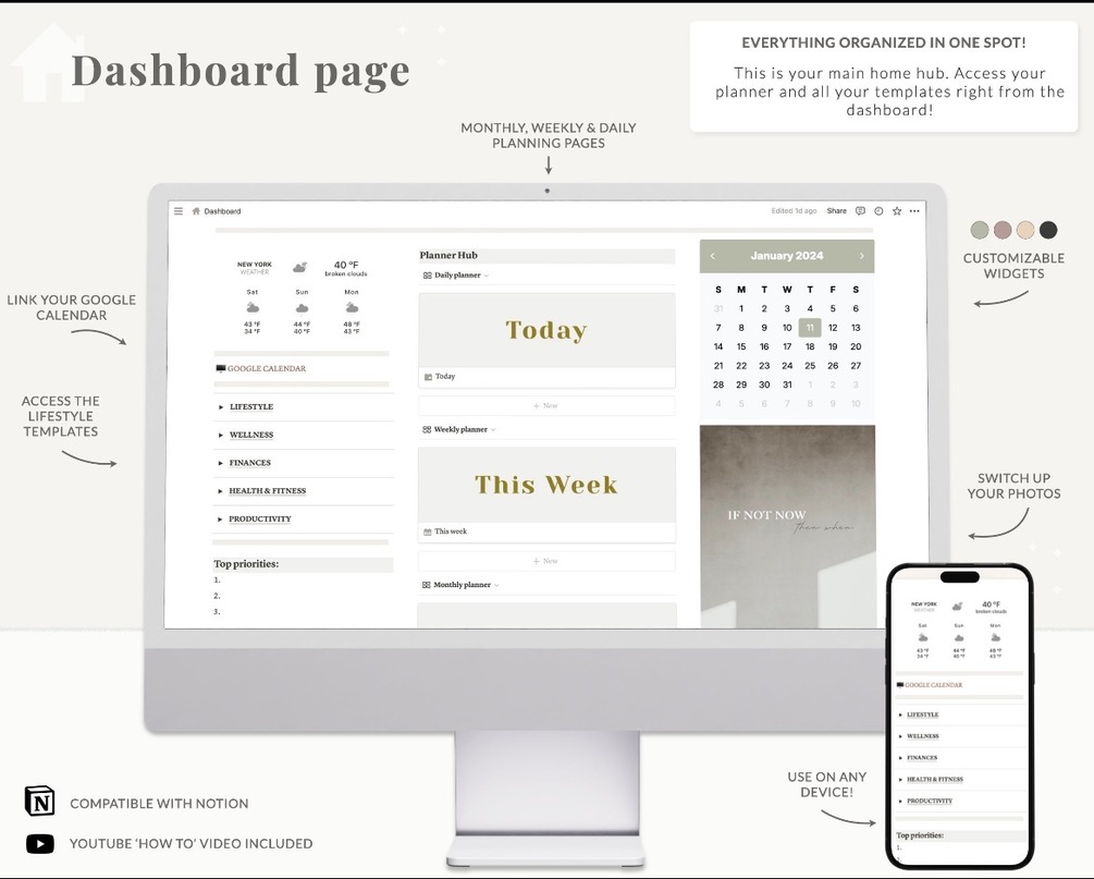 • Sync Across Devices: Access your planner anytime on your iPhone, iPad, or Laptop.